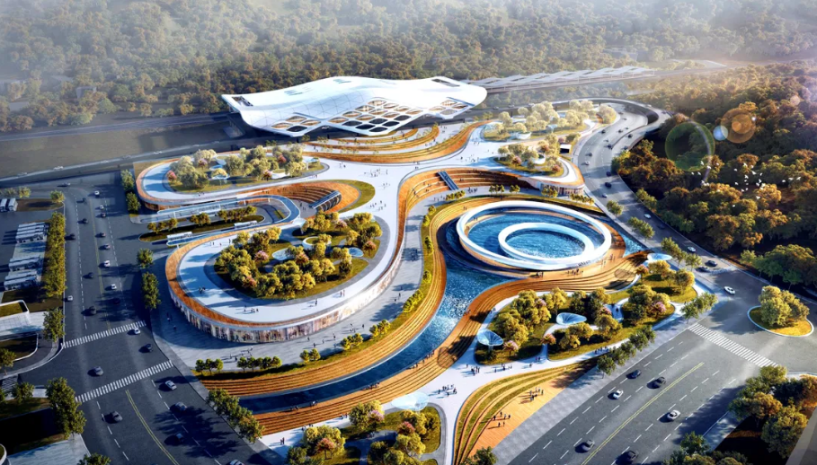 以“海韻浪涌,曙光初升”為設計靈感。寓意溫嶺作為濱海山城、中國大陸新世紀第一縷曙光首照地的獨特魅力